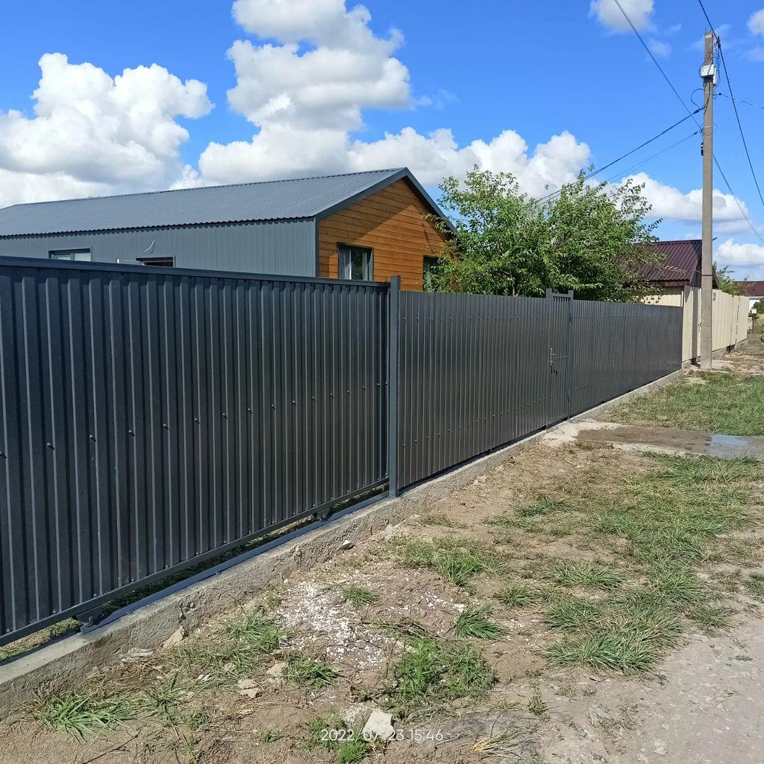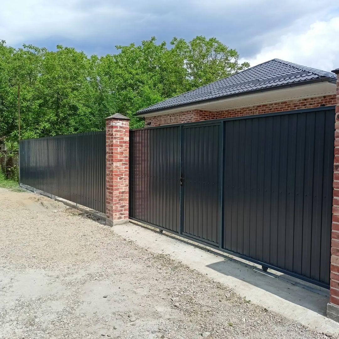 Столбы – труба 60х40 мм Прогоны – труба 30х20 мм Покрытие – грунт-эмаль 3в1 (цвет на выбор) Профнастил С-8, 0,4 мм (цвет на выбор)